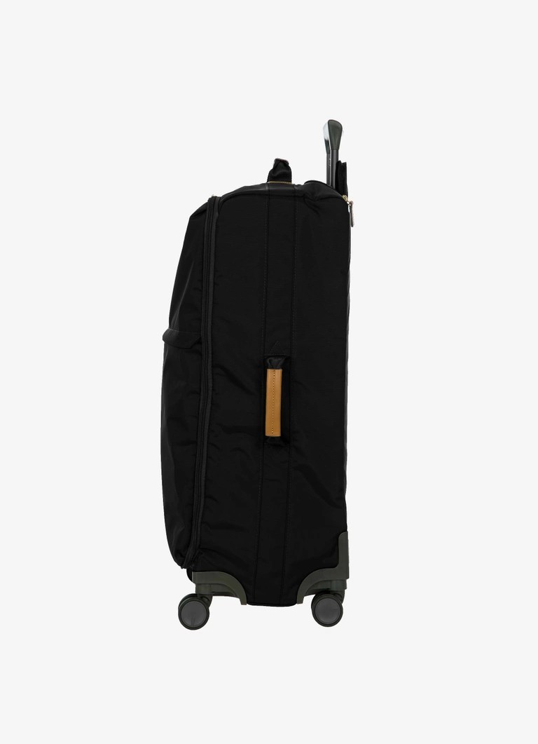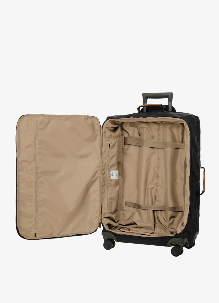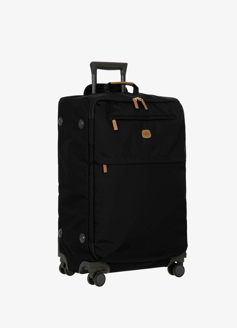 Il trolley medio 71cm X-Collection è realizzato in resistente nylon riciclato, con struttura rigida e leggera. L’apertura principale è dotata di zip con doppio cursore. Due tasche frontali con zip, tasche interne e cinghie per un’organizzazione ottimale degli spazi. Le ruote sono silenziose e piroettanti per garantire il movimento agevole a 360°, e sono incassate per massimizzare la capienza interna del trolley. Le maniglie imbottite, i tubi in alluminio robusti e stabili e l’impugnatura ergonomica del traino garantiscono il comfort di utilizzo. Dotato di porta indirizzi integrato e anellini per predisposizione a chiusura con lucchetto (venduto separatamente). Arricchito da vera pelle, il segno distintivo di Bric’s, e dai dettagli logati.