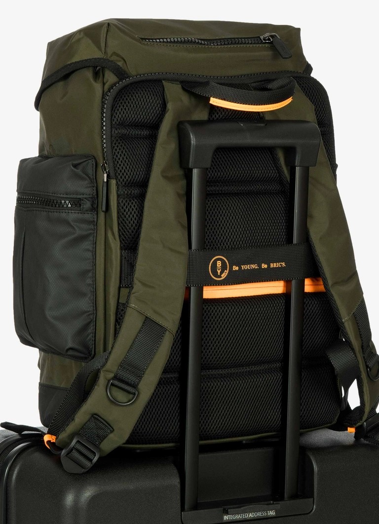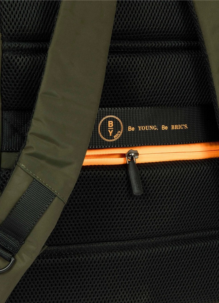 tasca superiore con zip sul retro, protetta con materiale impermeabile, che può contenere un laptop da 14”