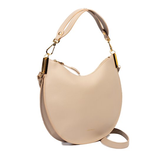 La rotondità della sua silhouette, riportata anche nel nome, è il segno distintivo della linea Coccinelle Sunup. Il manico è l’elemento caratterizzante della linea, modellato sulle stesse curve femminili che disegnano un intreccio sinuoso, donando un tocco di originalità. Il pellame double esalta la morbidezza e leggerezza della borsa, grazie anche agli interni sfoderati e regala un twist originale grazie al gioco di colore a contrasto. Questo modello è realizzato in pelle lavorata tramite specifici macchinari e poi bottalata per ottenere una mano particolarmente morbida. Questa particolare tipologia di pelle viene rifinita da entrambi i lati con pigmenti per ottenere l’effetto double. E’ un materiale resistente e adatto ad un uso quotidiano.