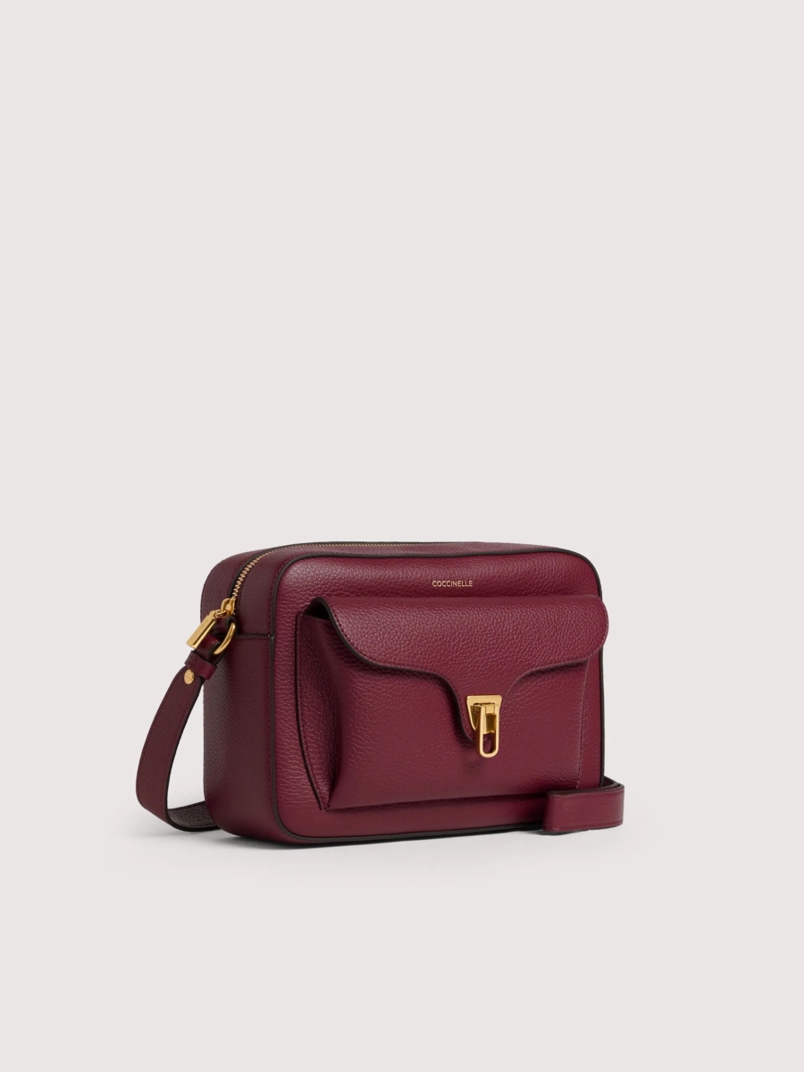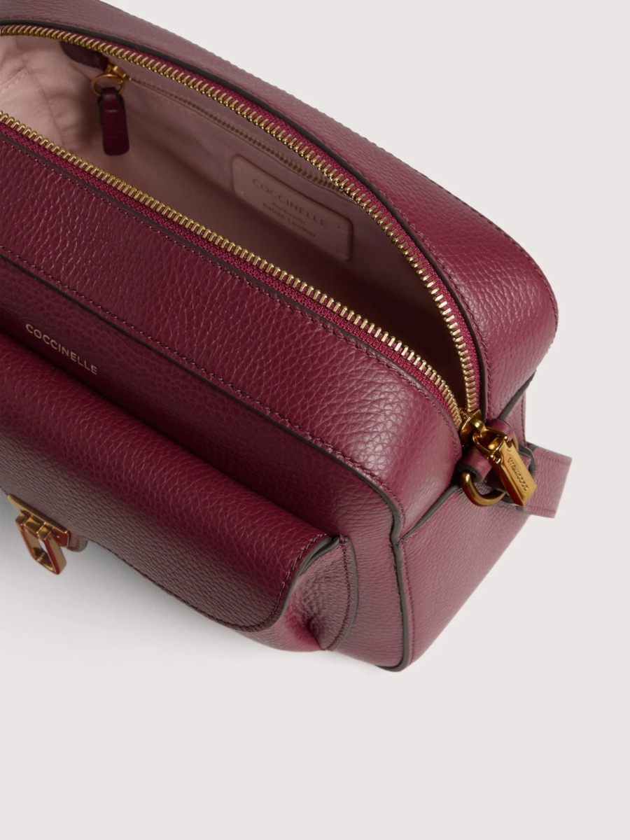 Questa camera bag della linea Beat è facile da abbinare ad ogni tipo di outfit. E’ arricchita da una tasca esterna caratterizzata dall’iconica chiusura in metallo a forma di plettro, ideale per tenere sempre al sicuro i propri oggetti personali. Questo modello è realizzato in pelle lavorata tramite specifici macchinari e poi bottalata al fine di mantenerne la morbidezza. È una pelle molto resistente che si presta a una facile pulizia, ideale per un uso quotidiano.