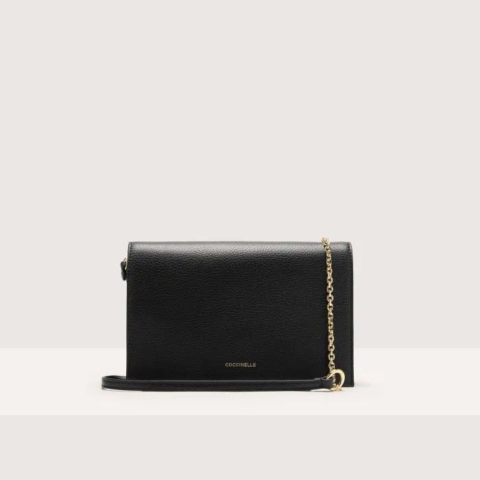La ricerca nei dettagli è la perfetta sintesi della minibag Coccinelle Dandy. La tracolla in catena regala un tocco di luce al modello, permettendo diverse portabilità, sia a spalla che a bandoliera, mentre la costruzione a soffietti la rende capiente e perfetta per avere il necessario sempre con sé. Questo modello è realizzato in pelle lavorata tramite specifici macchinari e poi bottalata al fine di mantenerne la morbidezza. È una pelle molto resistente che si presta a una facile pulizia, ideale per un uso quotidiano.