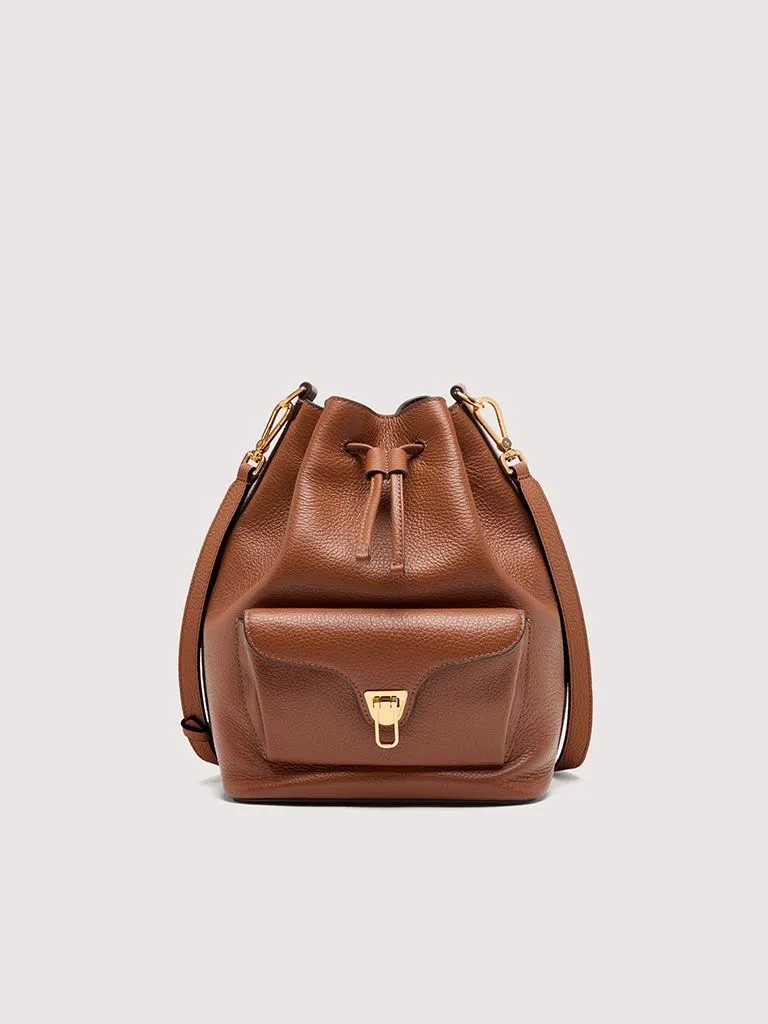 Coccinelle Beat è una tra le icone del brand: la distintiva chiusura a battente con il plettro è il simbolo d’identità Coccinelle, che per questa collezione si reinventa con funzionalità contemporanee ed eleganti. Il secchiello con tracolla in pelle dalla doppia portabilità è un mix perfetto tra struttura e morbidezza, tra praticità e design contemporaneo. Questo modello è realizzato in pelle lavorata tramite specifici macchinari e poi bottalata al fine di mantenerne la morbidezza. È una pelle molto resistente che si presta a una facile pulizia, ideale per un uso quotidiano.