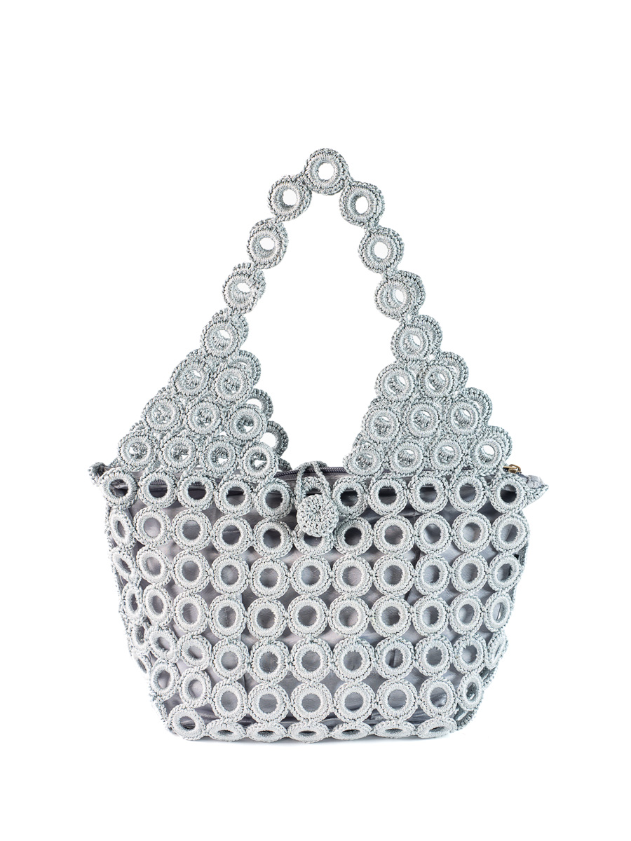 Borsa uncinetto realizzata a mano con chiusura a zip, fodera e tasca interna.