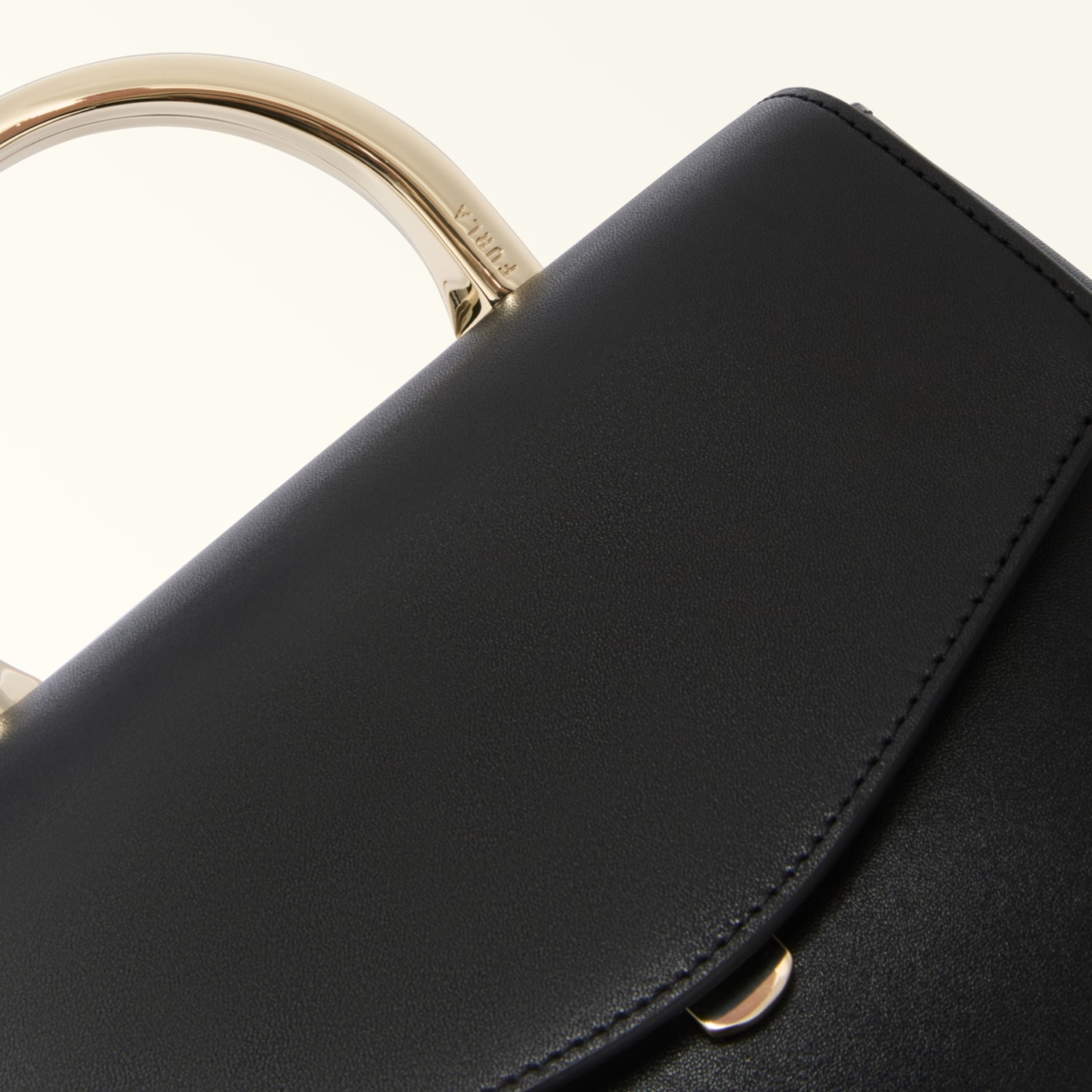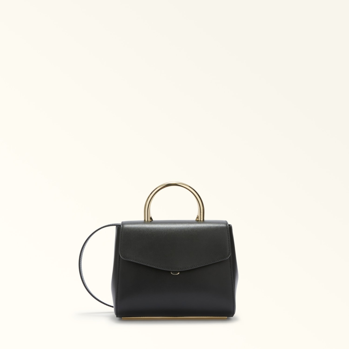 Stile pragmatico, linee pulite e look moderno, definiscono la mini top handle Furla Meridiana. Realizzata in pregiata pelle dal tocco setoso e liscio, si caratterizza per una silhouette elegante rifinita dal rigido manico stondato in metallo. Un piccolo scrigno dall’allure prezioso in cui contenere i propri effetti personali.
