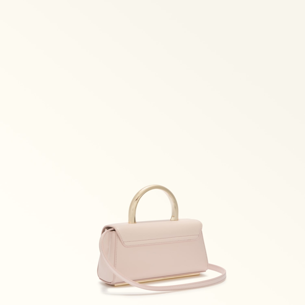 Stile pragmatico, linee pulite e look moderno, definiscono la mini top handle Furla Meridiana. Realizzata in pregiata pelle dal tocco setoso e liscio, si caratterizza per una silhouette elegante dal taglio orizzontale a cartella rifinita dal rigido manico stondato in metallo. Il piccolo accessorio è corredato anche di una tracolla abbinata in pelle regolabile e rimovibile che consente di indossare il modello in molteplici varianti.