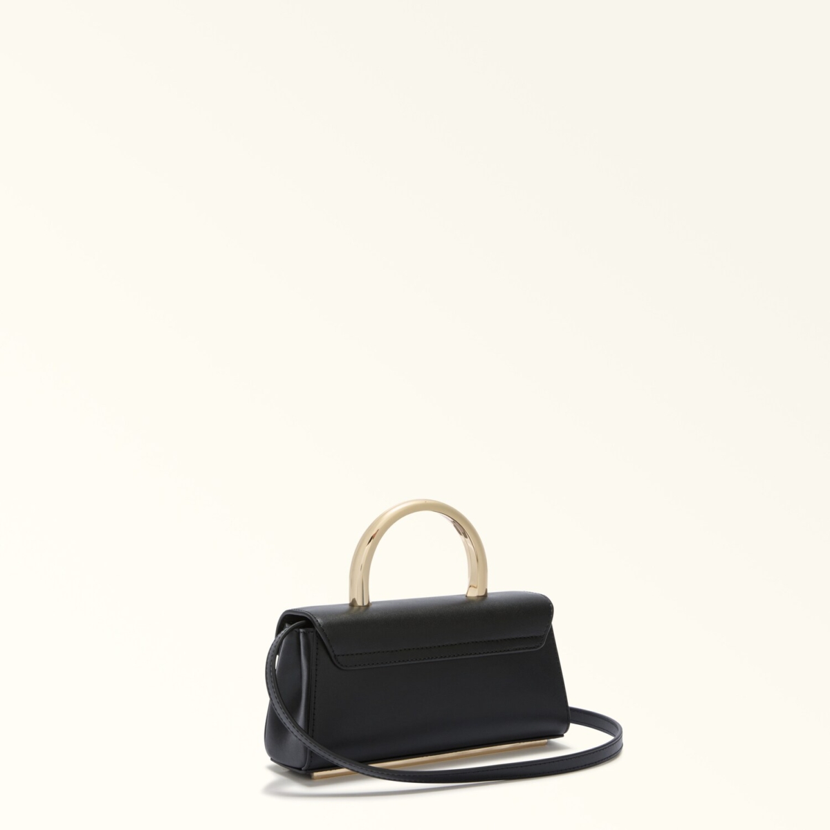 Stile pragmatico, linee pulite e look moderno, definiscono la mini top handle Furla Meridiana. Realizzata in pregiata pelle dal tocco setoso e liscio, si caratterizza per una silhouette elegante dal taglio orizzontale a cartella rifinita dal rigido manico stondato in metallo. Il piccolo accessorio è corredato anche di una tracolla abbinata in pelle regolabile e rimovibile che consente di indossare il modello in molteplici varianti.