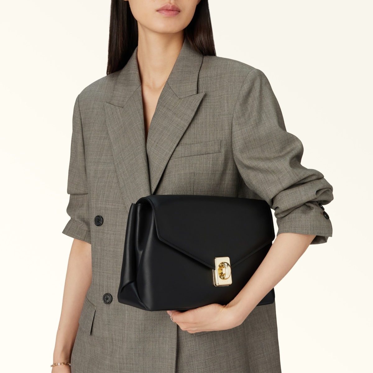 Risalta per la sua forma moderna dal taglio a trapezio con costruzione a soffietto laterale. Furla Meridiana è la crossbody che concilia eleganza ai volumi morbidi della silhouette enfatizzata dal tocco liscio e setoso della pelle. Dotata di due tracolle, una corta a catena e una più lunga abbinata, consente un indosso con molteplici modalità di fitting. Le dimensioni compatte permettono di accogliere tutti i propri essentials.