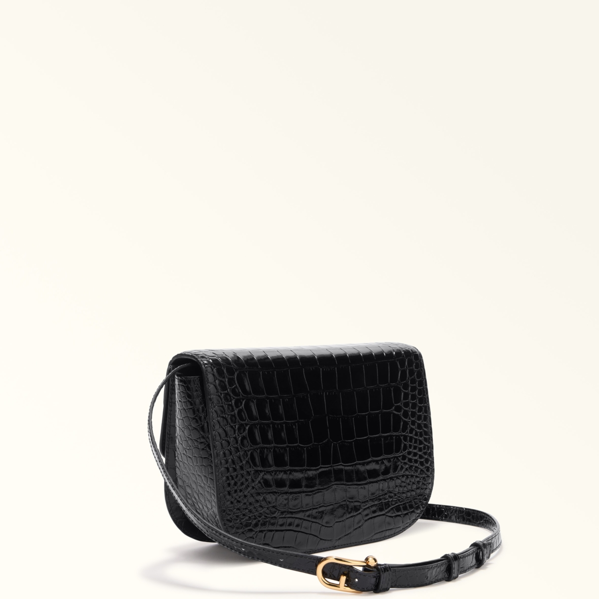 Linee sinuose e formato a sella caratterizzano questa Furla Sfera. La borsa è realizzata in pelle di vitello con stampa Cocco e arricchiata da morbidi dettagli scamosciati, che si accompagnano alla rotondità della chiusura a Sfera, firma iconica del marchio Furla. L’accessorio con tracolla abbinata regolabile è indossabile comodamente a spalla.