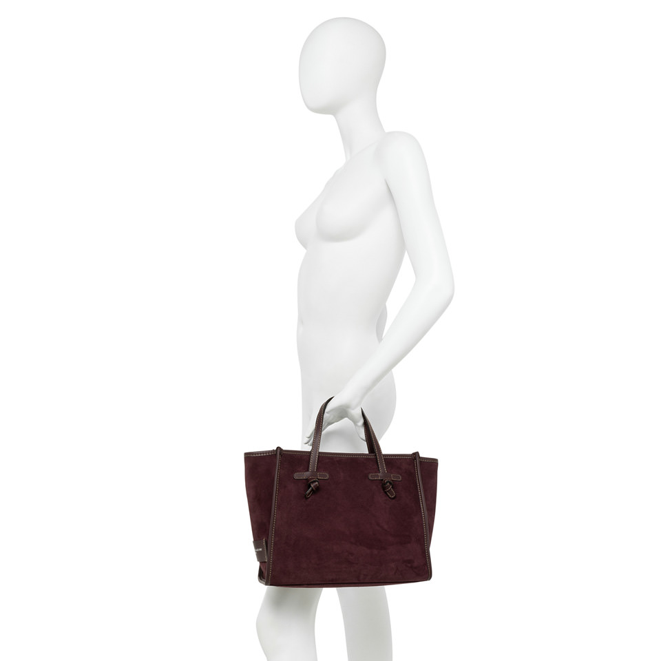 Miss Marcella 32, casual e al contempo elegante, è realizzata in pelle scamosciata con finiture in pelle liscia, per un look country chic. Dotata di manici in pelle e di una tracolla regolabile e removibile aggiuntiva per poterla indossare crossbody.