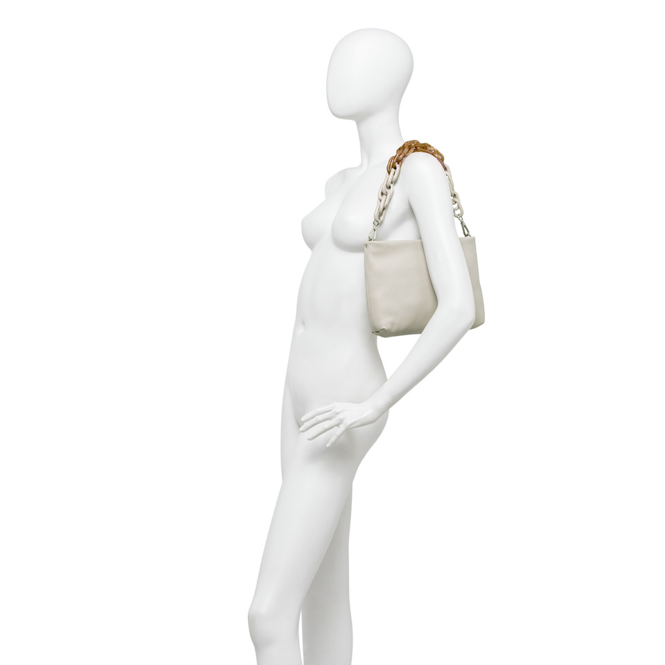 La Brenda, bestseller by Gianni Chiarini, è una pochette in pelle martellata impreziosita da una catena in resina degradé removibile. Al suo interno troviamo una tasca piatta. Da indossare crossbody grazie alla tracolla in pelle regolabile e removibile