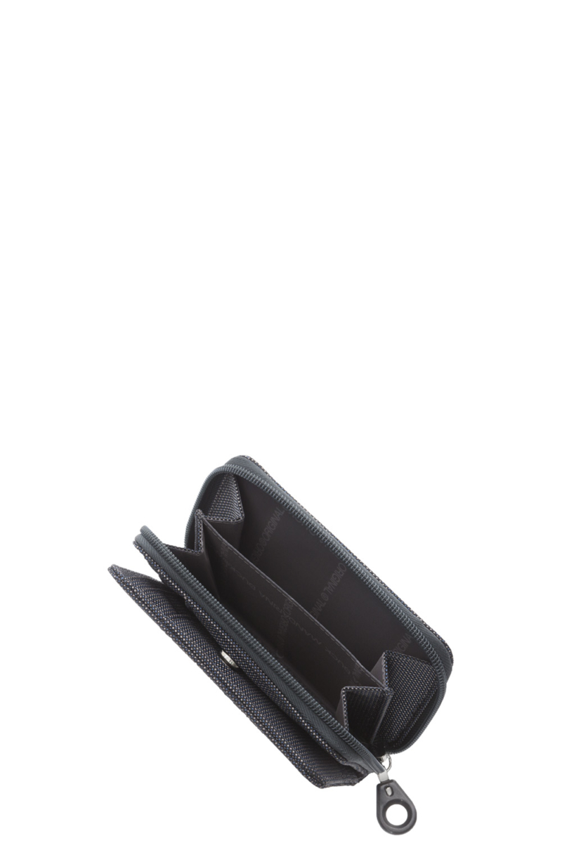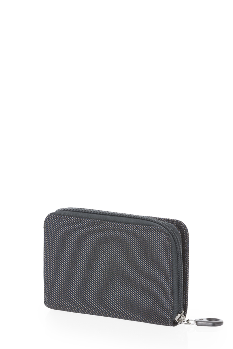Piccolo portafoglio zip around in mitrix, storico materiale del marchio Mandarina Duck caratterizzato da resistenza, versatilità ed effetto cangiante. Presenta una patta con bottone a pressione per le carte di credito.