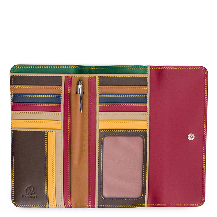 Mantieni il controllo su carte e contanti con il portafoglio a tre ante con zip! La tasca con zip su tutta la lunghezza è suddivisa in quattro sezioni in modo da tenere organizzate le monete. All’interno della sezione principale troverai una serie di scomparti per carte, due sezioni per le banconote e una finestra trasparente per un documento d’identità o una foto. Un’elegante penna argentata mywalit aggiunge il tocco finale!