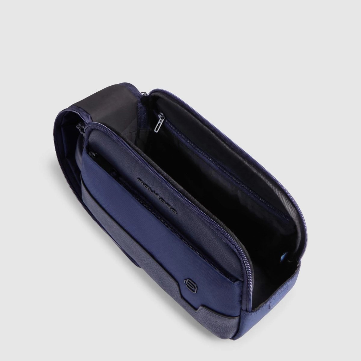 Beauty case uomo in tessuto riciclato e pelle a due scomparti