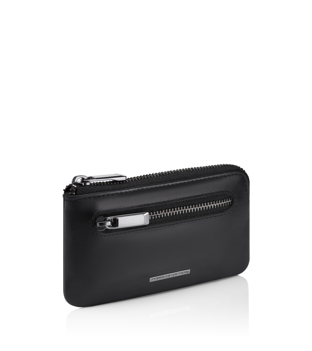 Portachiavi con zip realizzato in esclusiva pelle liscia. Con logo in rilievo e tasca extra con zip.