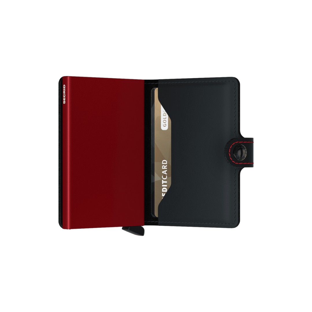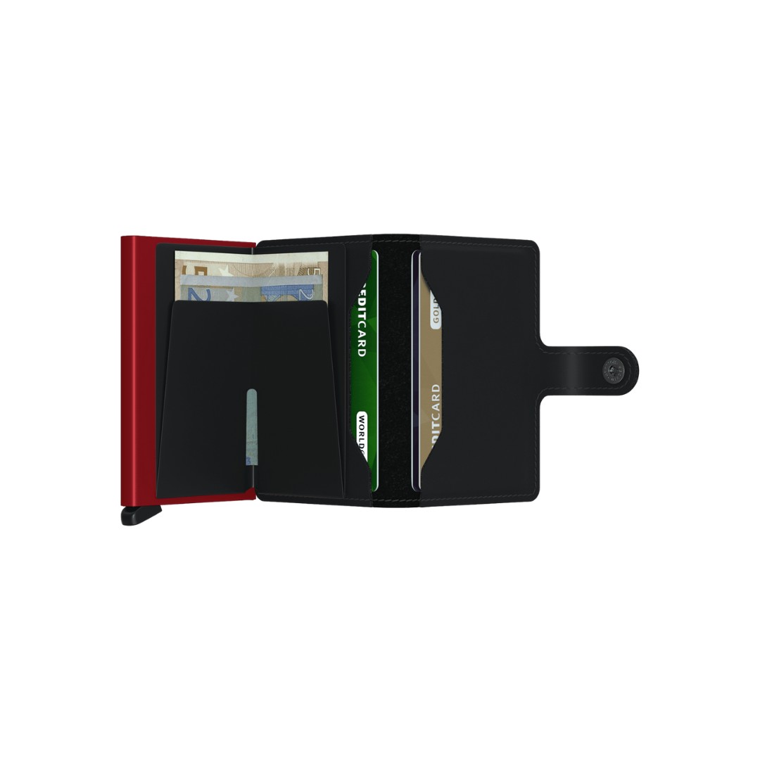 Secrid portafogli compatto in alluminio e pelle “Miniwallet Matte” Nero MM.BLACK & RED