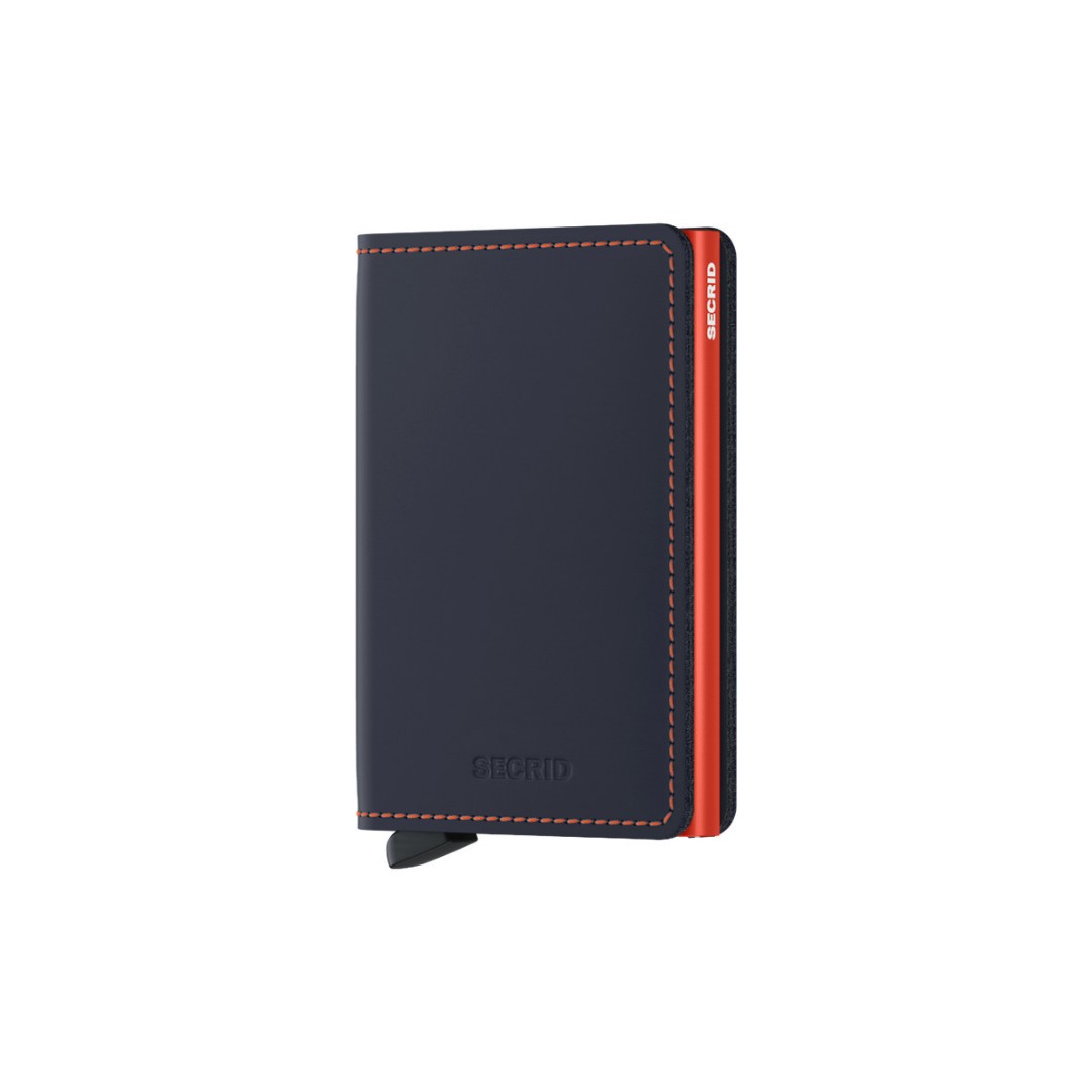 Secrid portafogli compatto in alluminio e pelle “Slimwallet Matte” Blu SM.NIGHTBLUE & ORANGE