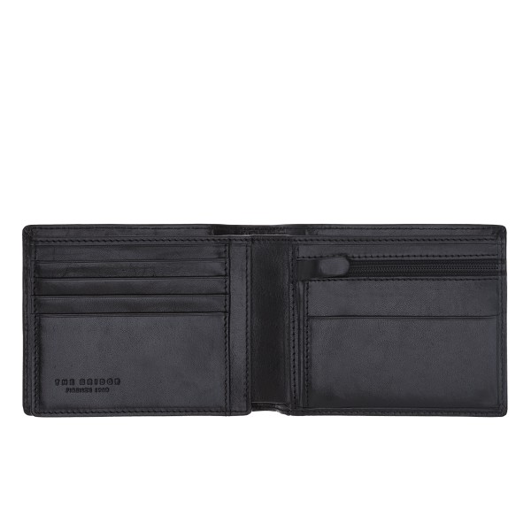 Elegante e discreto, il portafoglio in pelle The Bridge è perfetto per custodire carte di credito, banconote e monete. Sottile e minimale, consente un rapido accesso a carte e documenti e può essere facilmente riposto nella tasca.