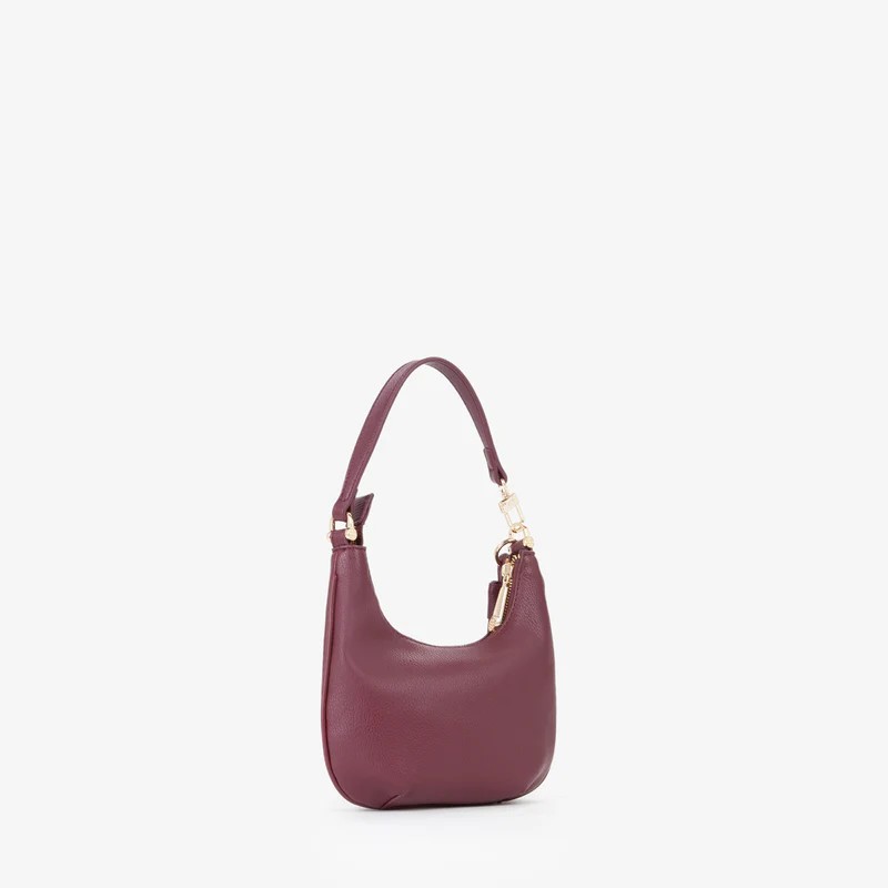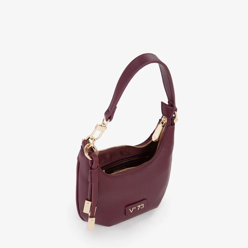 Mini bag in morbida nappa con pendente personalizzato. Logo applicato su patch.