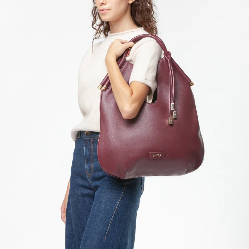 Hobo bag in morbida nappa con pendente personalizzato. Logo applicato su patch.