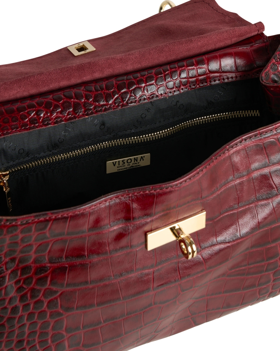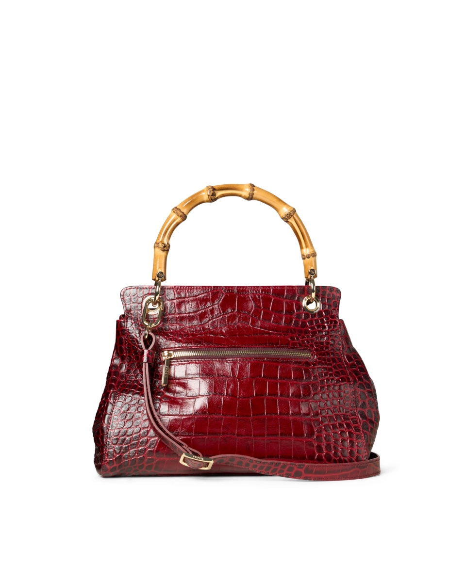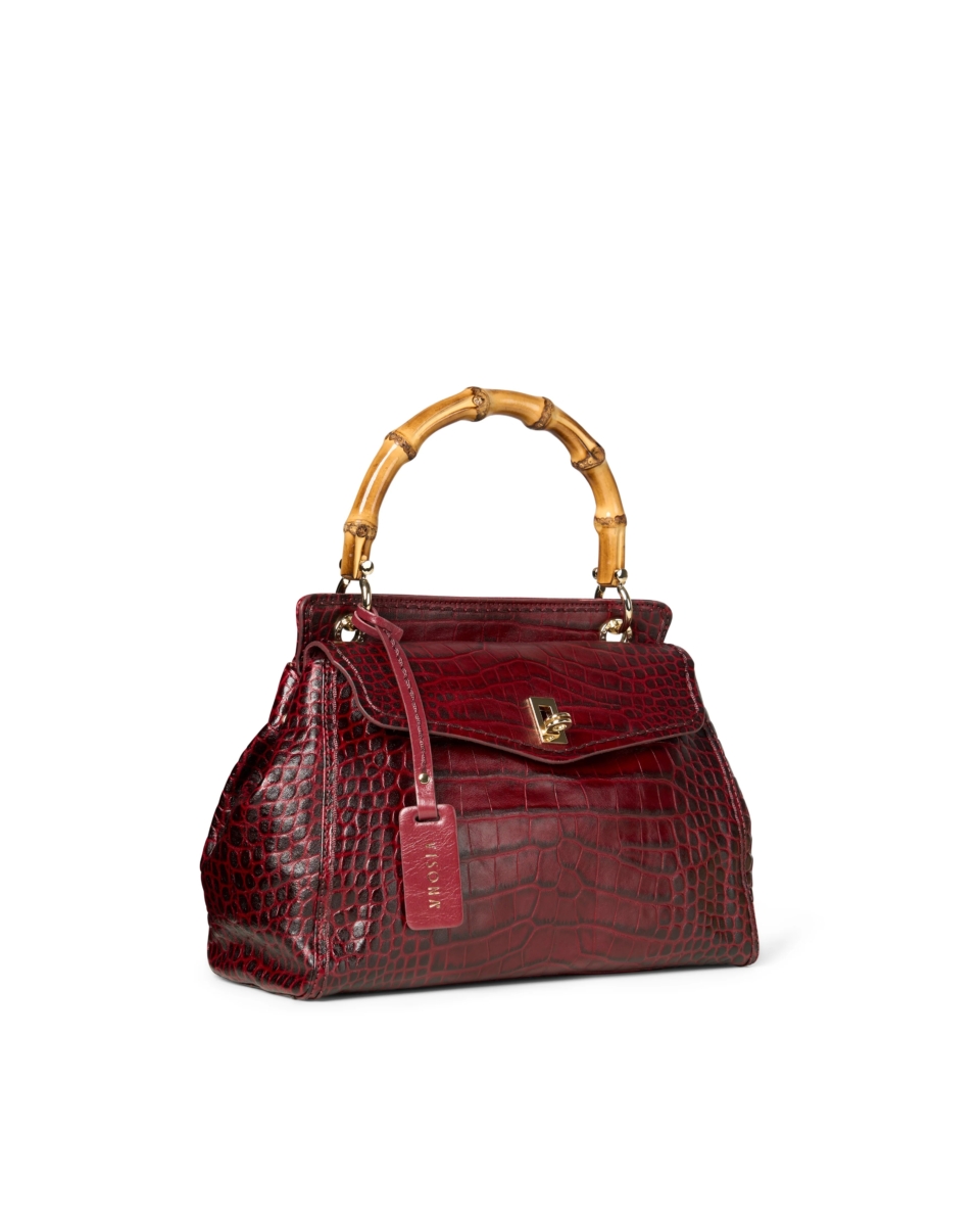 Scopri la linea Miami. Questa borsa può essere portata a mano o a spalla grazie alla tracolla rimovibile. Le cuciture distintive e i dettagli in bamboo aggiungono un tocco di eleganza. 100% Made in Italy.
